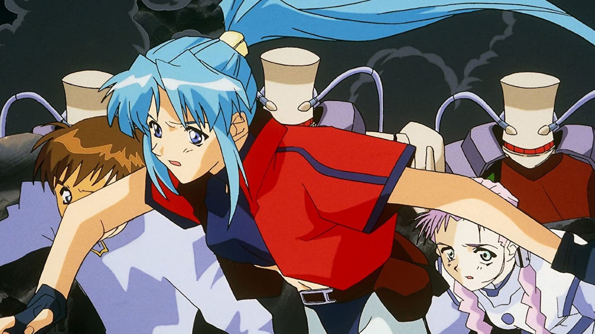 DTエイトロン é um anime de Ação e Ficção Científica de 1998 produzido por Sunrise. Shu is from Datania, a country that makes young children work.
