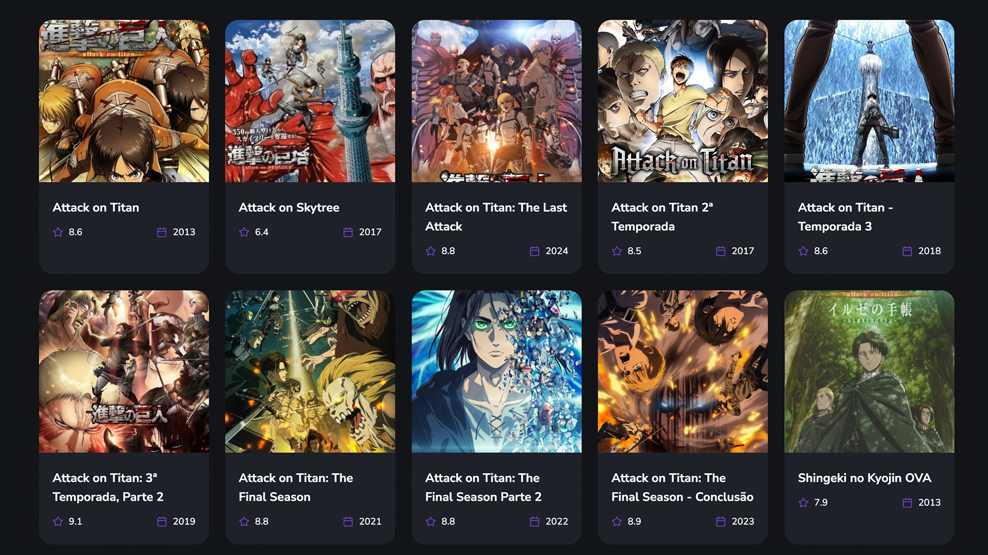 - Attack on Titan: The Movie – Part 3 – The Roar of Awakening (2018): Resumo da 2ª temporada, preparando terreno para a 3ª.